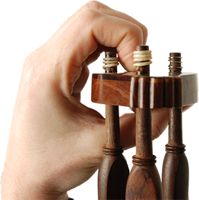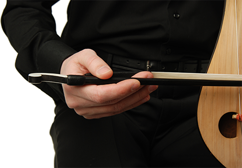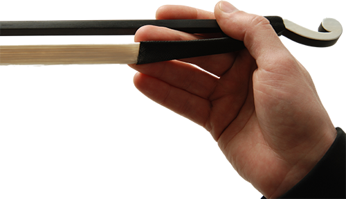 Yay, sağ elin orta ve yüzük parmağı deri parça ile tahta arasına geçirildikten sonra, işaret parmağı ile alttan, baş parmak ile üstten kavranması ile tutulur. Serçe parmak, yüzük parmağına bitişik ve paralel olarak tutulur.